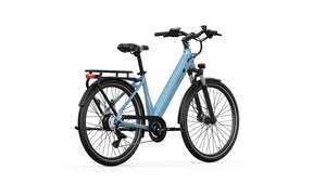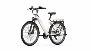 36 В, велосипед для ежедневных поездок на работу с низкой рамой и комфортной посадкой: емкий аккумулятор для более редких зарядок, датчик крутящего момента для помощи при педалировании, соответствующей вашим усилиям, и гидравлические дисковые тормоза для уверенного контроля в городском потоке. Передняя подвеска и широкие дорожные шины 700C сглаживают неровности мостовых и бордюров, а яркая передняя фара и задний стоп-сигнал обеспечивают вашу видимость. Простой TFT/LCD дисплей с пятью уровнями помощи и поддержкой до 25 км/ч — идеален для ежедневных поездок и расслабленных вечерних прогулок.
